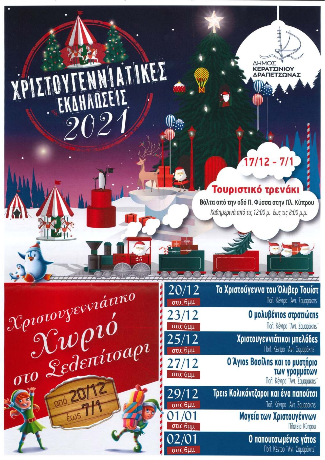 Ο Δήμος Κερατσινίου – Δραπετσώνας σε συνεργασία με τον Εμπορικό Σύλλογο Κερατσινίου – Δραπετσώνας για ακόμα μία χρονιά διοργανώνουν βόλτες στην πόλη μας συνδέοντας τα εμπορικά σημεία με το μαγικό τρενάκι των Χριστουγέννων. Το τρενάκι θα λειτουργεί καθημερινά ώρες 12.00 – 20.00 έως τις 7 Ιανουαρίου με συχνότητα δρομολογίων ανά μία ώρα.