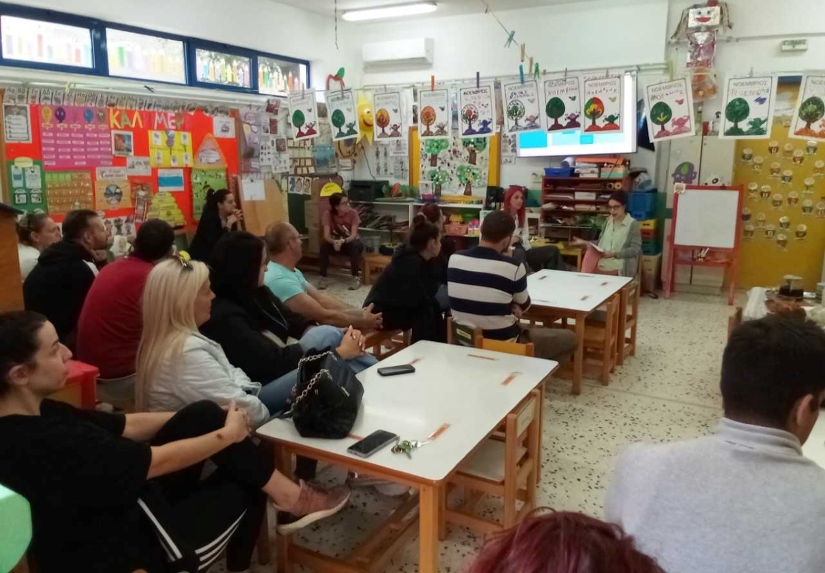 Η συμμετοχή των γονέων ήταν καθοριστικής σημασίας για τη δημιουργία μίας μεγαλύτερης σύνδεσης και κατανόησης του περιεχομένου της ομιλίας. Η δράση υλοποιήθηκε από τις Ψυχολόγους του Διευρυμένου Κέντρου Κοινότητας (Κεντρική Δομή & Παράρτημα Ρομά), Αποστολία Ντέκοβα και Εύα Μυλωνά.