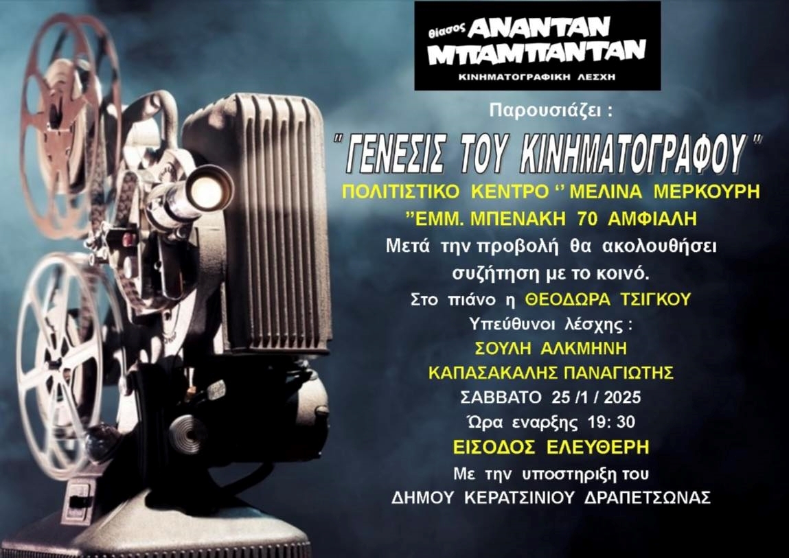 Η κινηματογραφική λέσχη του Αναντάν ξεκινά με «ΓΕΝΕΣΙΣ ΤΟΥ ΚΙΝΗΜΑΤΟΓΡΑΦΟΥ», μια αναδρομή στην ιστορία του σινεμά με ζωντανή συνοδεία πιάνου…όπως παλιά!