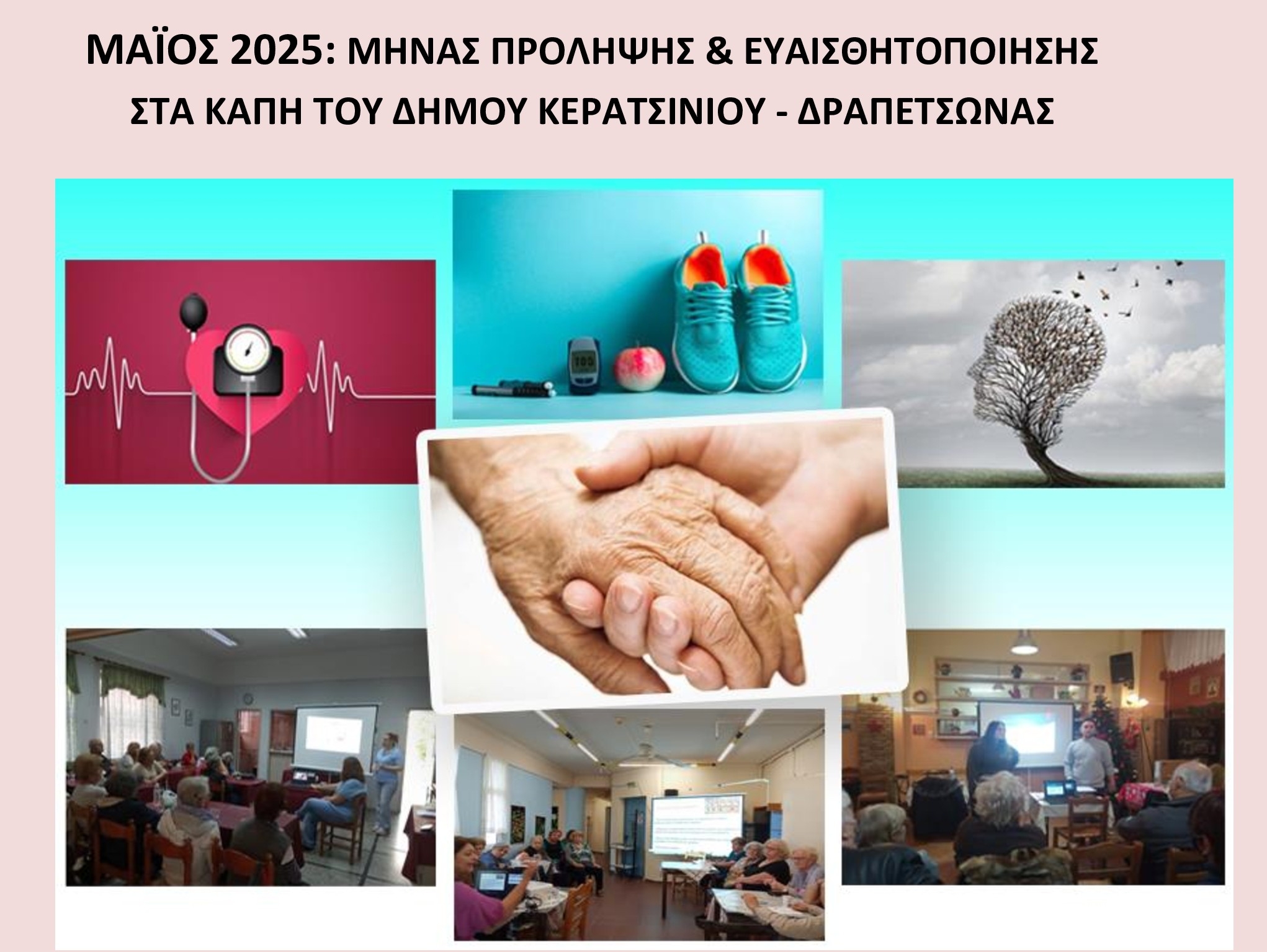 Το Τμήμα Προστασίας Τρίτης Ηλικίας του Δήμου Κερατσινίου - Δραπετσώνας, με σταθερή δέσμευση στην προαγωγή της υγείας και της ποιότητας ζωής των συμπολιτών μας μεγαλύτερης ηλικίας, και συμπράττοντας με εξειδικευμένους φορείς και επιστημονικούς συνεργάτες, υλοποιεί κατά τον μήνα ΜΑΪΟ μία σειρά σημαντικών προληπτικών δράσεων ενδυνάμωσης και υποστήριξής τους.