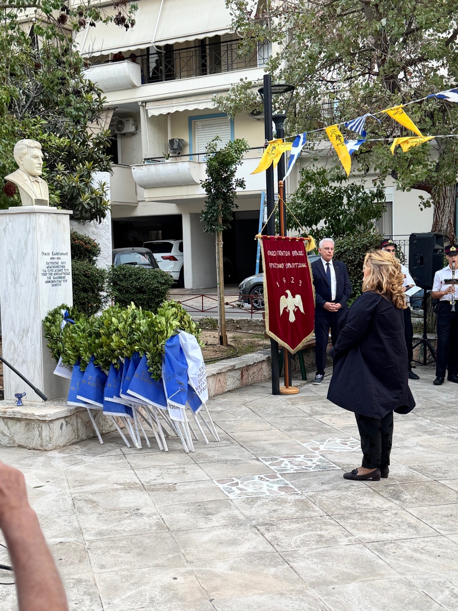 Ακολούθησε η κατάθεση στεφάνων στην προτομή του εθνικού ήρωα Νίκου Καπετανίδη, από τους Δήμαρχο Κερατσινίου-Δραπετσώνας Χρήστο Βρεττάκο, τη Λένα Νίτσου-Ψαθά, την καθηγήτρια Ειρήνη Πετρίδου και τη μαθήτρια Μαρία Κολοβού εκ μέρους του 2ου Γυμνασίου Δραπετσώνας, τον Αθανάσιο Αθανασιάδη εκ μέρους του Συνδέσμου Ποντιακών Σωματείων Νοτίου Ελλάδος και Νήσων της ΠΟΕ, τον Πρόεδρο του Εξωραϊστικού Πολιτιστικού Συλλόγου «Θυμαιτάδαι» Γεώργιο Δρακόπουλο και την Αντιπρόεδρο Ρούσα Μιχαλοπούλου, τον Ταμία Γεώργιο Καραγιαννάκη εκ μέρους της Ένωσης Κρητών Κερατσινίου-Δραπετσώνας «Το Αρκάδι», τον Πρόεδρο της Ένωσης Ποντίων Σουρμένων Γιώργο Σαραφίδη, τον Αντιπρόεδρο Χρήστο Μανουσαρίδη εκ μέρους της Ένωσης Ποντίων Περάματος, τον Πρόεδρο της Ένωσης Ποντίων Νικαίας – Κορυδαλλού Θοδωρής Μακρίδης, τον Αθλητικό Σύλλογο Ποντίων Δραπετσώνας, τη Διευθύντρια της ιστοσελίδας pontosnews.gr Χριστίνα Χαφουσίδου και την Πρόεδρο της Ένωσης Ποντίων Πειραιώς-Κερατσινίου-Δραπετσώνας Αναστασία Ποιμενίδη- Ιωαννίδη.