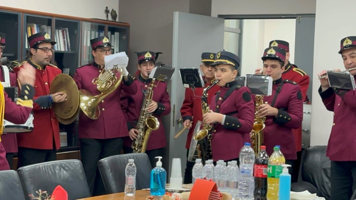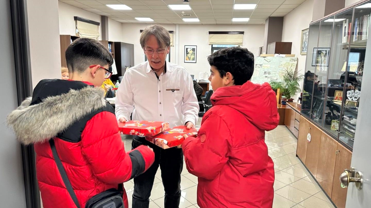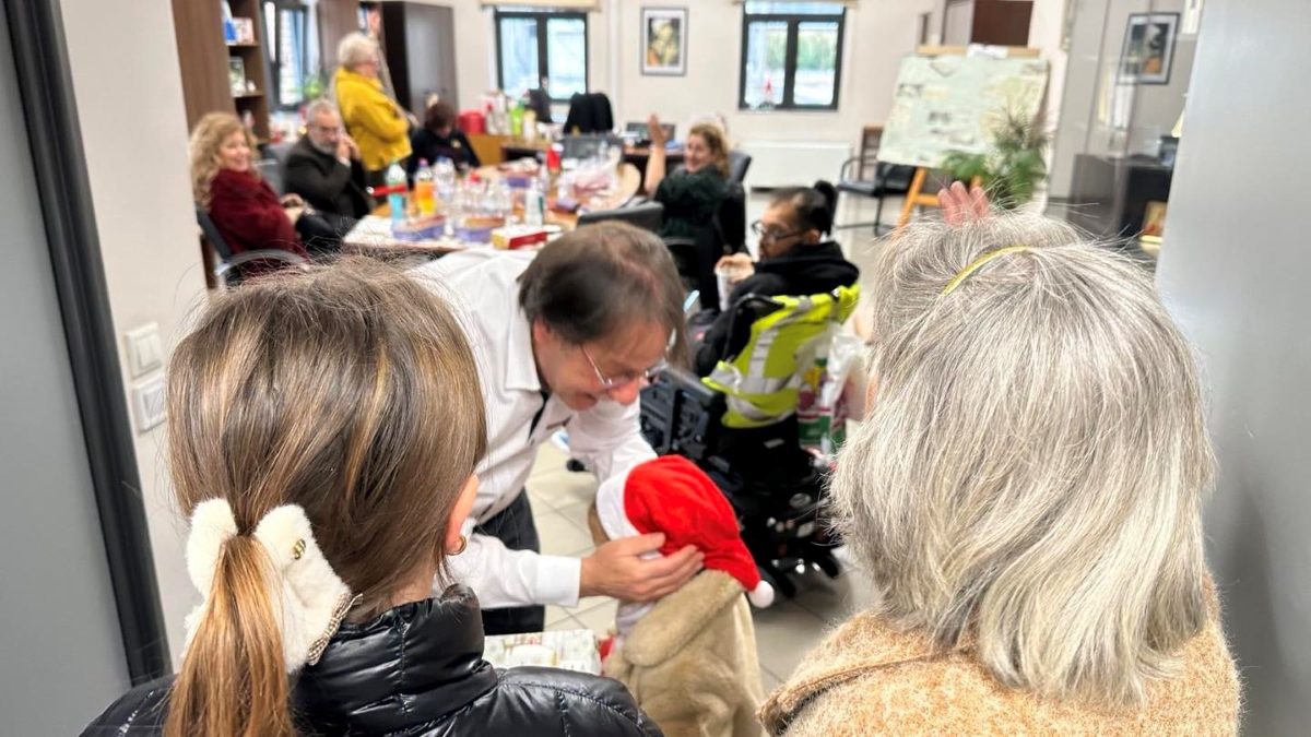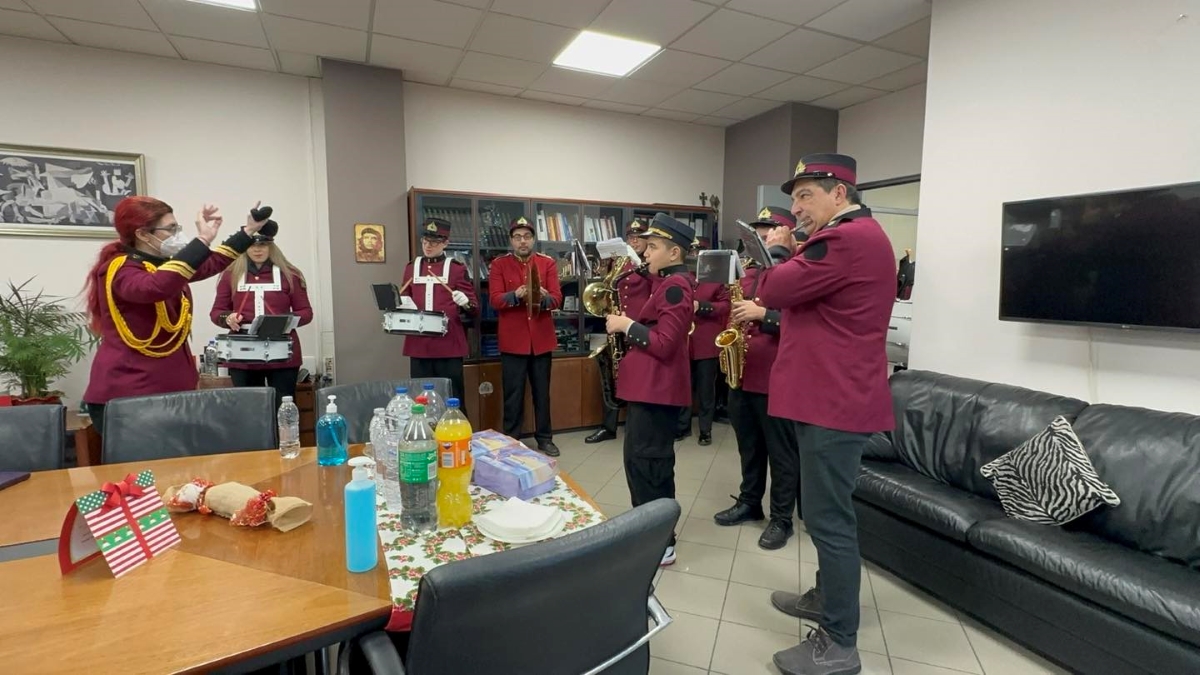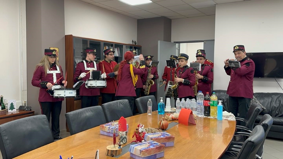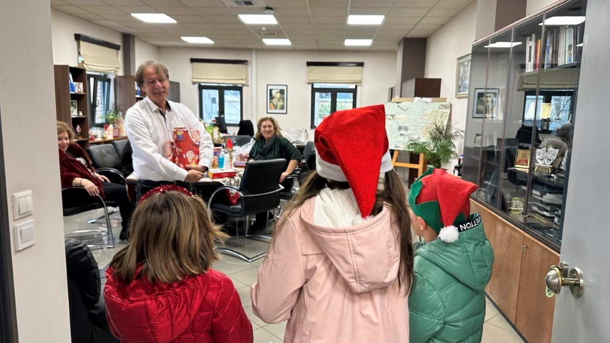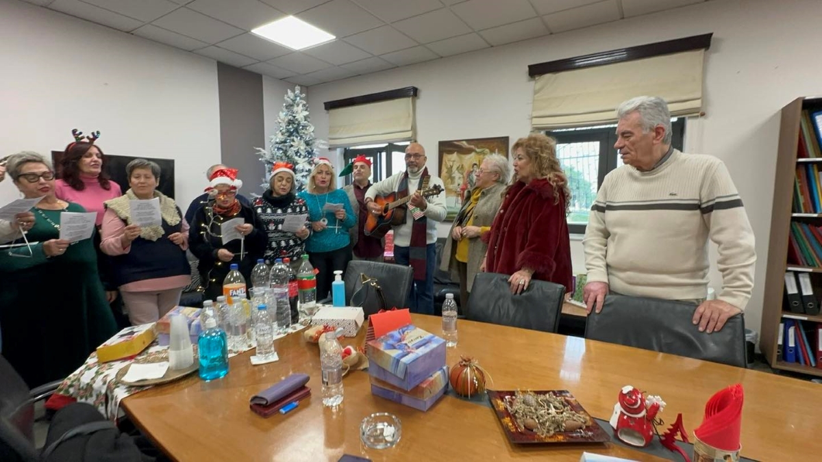 Το χριστουγεννιάτικο σκηνικό περιλάμβανε εκτός από τις ξεχωριστές μελωδικές ευχές, δώρα, κεράσματα και θερμές ευχές για ένα πιο δημιουργικό και αισιόδοξο νέο έτος.