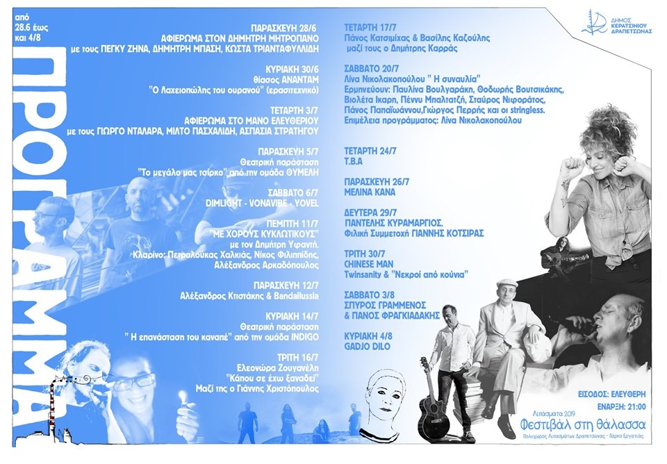Με χιλιάδες κόσμου πλημμύρισε για άλλη μια φορά ο πολυχώρος των Λιπασμάτων στο πλαίσιο της έναρξης του «Φεστιβάλ στη θάλασσα- 2019». Το μεγάλο πολιτιστικό γεγονός για την πόλη μας και την ευρύτερη περιοχή του Πειραιά, ξεκίνησε την περασμένη Παρασκευή 28 Ιουνίου, με ένα εξαιρετικό αφιέρωμα στον σπουδαίο Δημήτρη Μητροπάνο και αναμένεται να μας κρατήσει συντροφιά τους καλοκαιρινούς μήνες με μερικά από τα πιο πολυσυζητημένα ονόματα της εγχώριας μουσικής σκηνής, αλλά και παραστάσεις και συναυλίες ερασιτεχνικών σχημάτων.