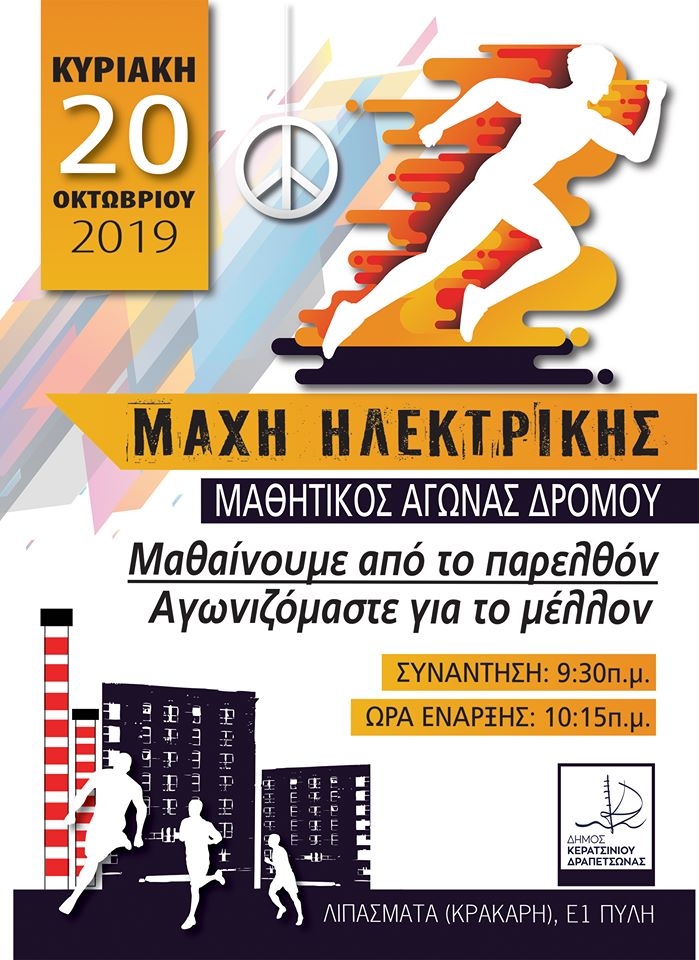 Ο Δήμος Κερατσινίου-Δραπετσώνας με αφορμή τη συμπλήρωση 75 χρόνων από τη Μάχη της Ηλεκτρικής, διοργανώνει, μαζί με τα σχολεία της πόλης, την Κυριακή, 20 Οκτωβρίου 2019, τον 4ο Μαθητικό Αγώνα δρόμου, αφιερωμένο στη μνήμη όσων αγωνίστηκαν.