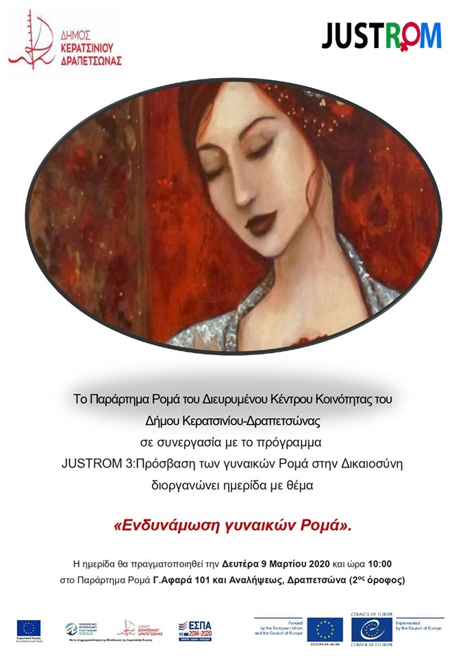 Η εν λόγω δράση θα πραγματοποιηθεί στον χώρο του Παραρτήματος Ρομά, τη Δευτέρα 9 Μαρτίου 2020 και ώρα 10:00 π.μ. σε συνεργασία με τους εκπροσώπους (νομικούς και διαμεσολαβητές) του προγράμματος JUSTROM 3 «Πρόσβαση των γυναικών Ρομά στην Δικαιοσύνη».